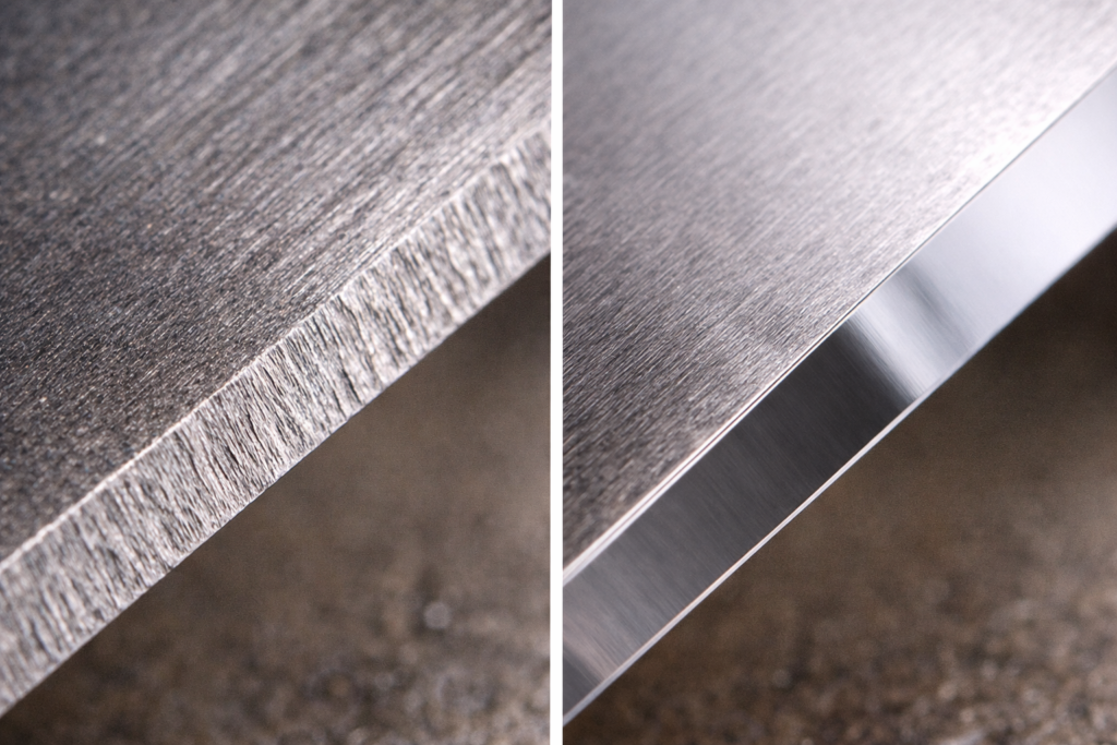 - Avaliação de brilho de corte: a superfície cortada deve refletir luz de forma especular, sem opacidade.