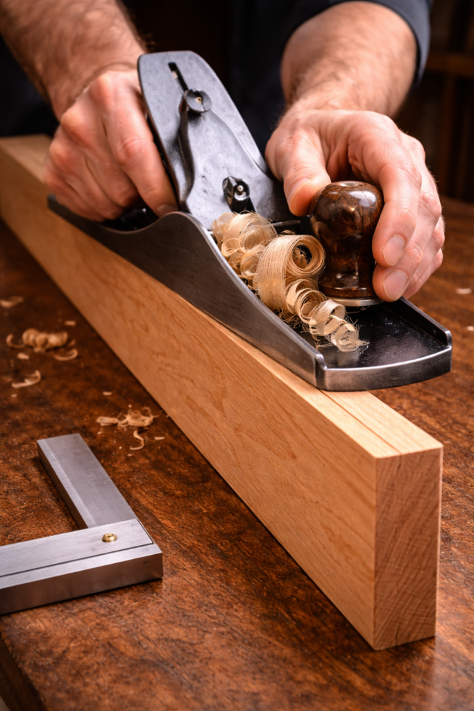 | Esquadro perfeito atingido | Centralizar a plaina e realizar passagem final | Superfície pronta para colagem ou marcação |