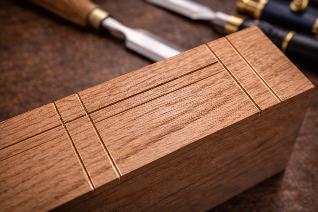 Uma linha de marcação profunda e precisa serve como um canal físico para o assentamento de serras e formões, mas sua utilidade estende-se também como o referencial supremo para os processos de acabamento manual. Quando as linhas de base e de profundidade estão estabelecidas com o rigor do graminho, o marceneiro possui indicadores visuais e táteis claros que sinalizam exatamente onde o trabalho de desbaste deve cessar. Essa clareza é essencial para evitar o sobreprocessamento das peças, garantindo que as dimensões finais coincidam perfeitamente com o layout original e que a ortogonalidade do conjunto seja preservada durante o refinamento das superfícies.