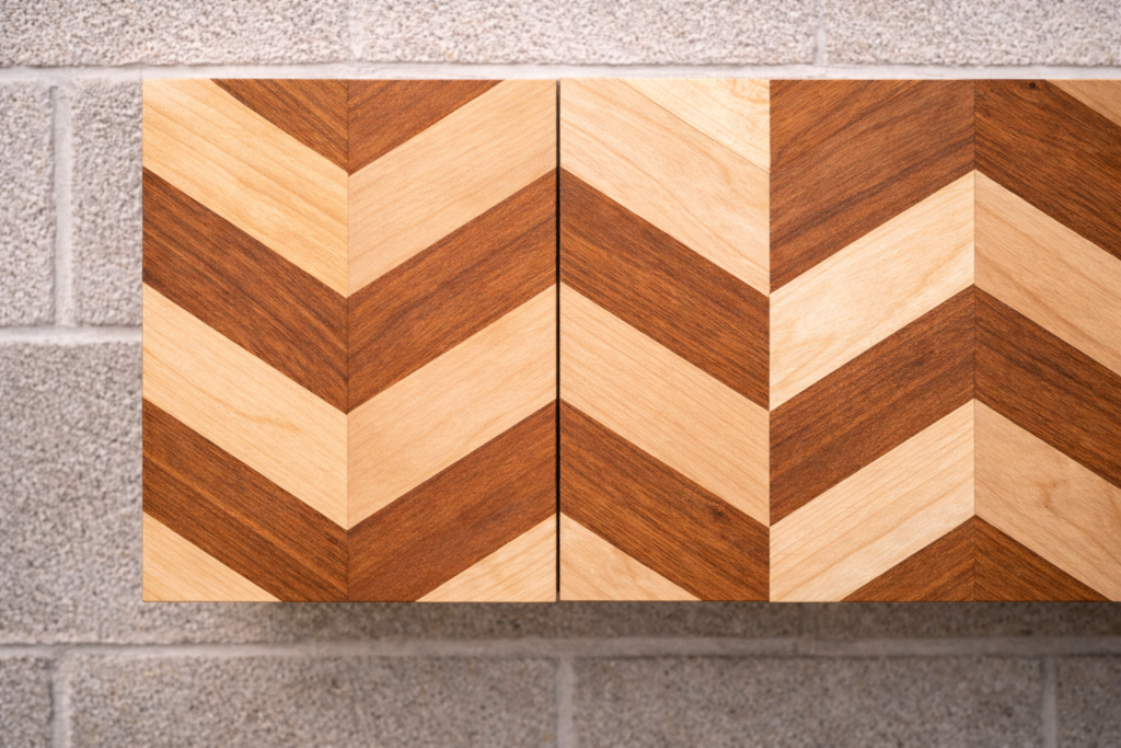 A marchetaria, quando aplicada com moderação, eleva o aparador de móvel funcional a peça de design. O segredo está na simplicidade do desenho e na precisão da execução. Padrões como listras ou chevron funcionam porque criam ritmo visual sem competir com o volume do móvel.