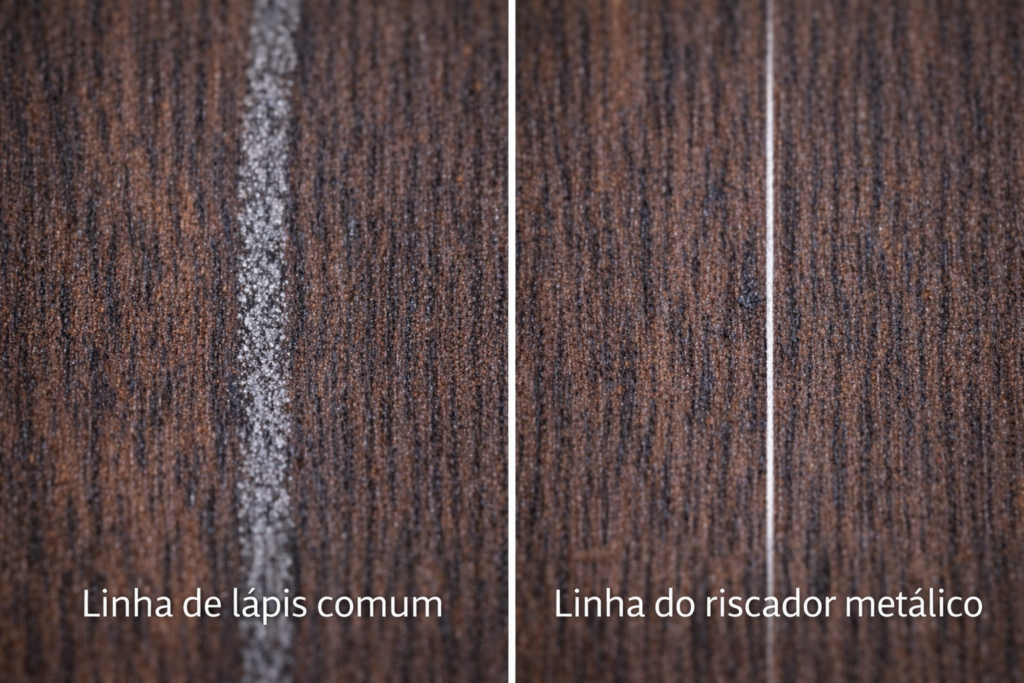 - Utilize o riscador para traçar uma linha fina e precisa perpendicular à borda.