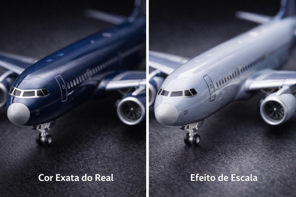 Um dos conceitos mais críticos e frequentemente ignorados na pintura de precisão é o efeito de escala. Na realidade, quando observamos um objeto a grande distância, as cores parecem menos saturadas e mais claras devido à massa de ar e partículas entre o observador e o alvo — um fenômeno conhecido como perspectiva atmosférica. Ao reduzir um objeto para escalas reduzidas, como 1:35 ou 1:72, o artesão deve replicar essa percepção. Aplicar uma tinta com o código exato da cor real resultará em uma miniatura que parece escura e visualmente pesada. Para obter realismo, é necessário realizar uma dessaturação controlada, adicionando tons claros à cor de base para compensar a redução de volume.