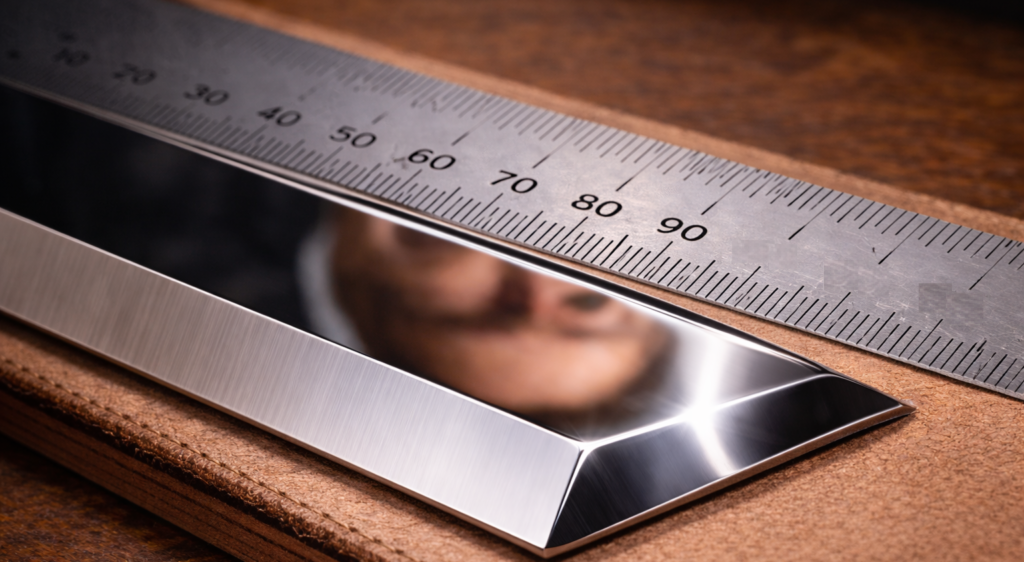 A face posterior de uma lâmina de plaina ou de um formão, tecnicamente conhecida como as costas, é frequentemente negligenciada, mas constitui metade da geometria do gume final. Para que uma ferramenta corte com precisão, as costas devem ser perfeitamente planas e polidas até um brilho espelhado, atuando como o plano de referência contra o qual o chanfro será afiado. Se as costas apresentarem qualquer concavidade, convexidade ou marcas de retificação industrial grosseira, o encontro com o chanfro resultará em uma linha serrilhada e ineficiente, independentemente do esforço dedicado à afiação da face frontal. A planicidade absoluta das costas é a fundação sobre a qual toda a agudeza da ferramenta é construída.