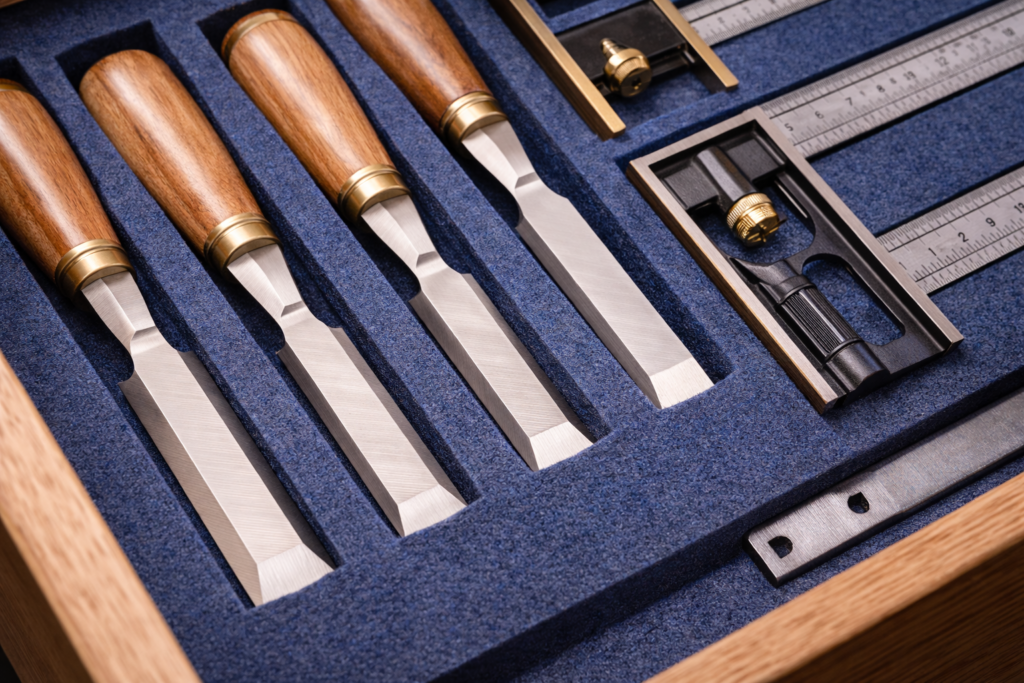 Armários de ferramentas feitos em madeira maciça ou compensado de alta qualidade atuam como um buffer higroscópico, absorvendo e liberando umidade de forma mais lenta que o ar ambiente, o que ajuda a manter um microclima estável para o metal. A organização vertical em paredes de ferramentas, embora visualmente agradável, exige cuidados extras com a circulação de poeira e o risco de quedas, sendo preferível o uso de suportes magnéticos ou encaixes mecânicos seguros que não danifiquem as ferramentas. A proteção de ativos metrológicos é, em última análise, a proteção da própria qualidade do trabalho, pois a precisão de um encaixe é limitada pela integridade da ferramenta que o mediu e marcou originalmente na madeira.