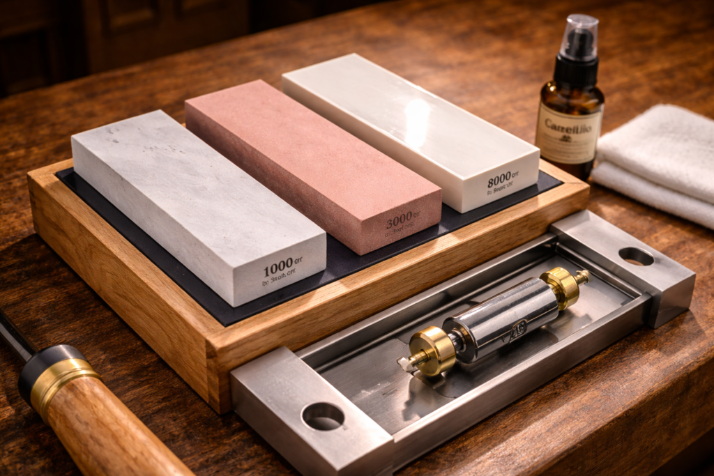O afiamento de precisão é a competência técnica que separa o marceneiro utilitário do mestre artesão, sendo o processo responsável por transformar o aço bruto em um gume capaz de seccionar fibras de madeira em nível molecular. Uma ferramenta cega exige maior aplicação de força, o que compromete o controle, aumenta o risco de acidentes e resulta em superfícies que exigem lixamento excessivo para atingir o acabamento desejado. A estação de afiação deve ser um santuário de ordem e precisão dentro da oficina, equipada com pedras de água ou diamante de diferentes granulometrias, suportes estáveis e sistemas de iluminação que permitam a inspeção minuciosa do gume em cada etapa da progressão abrasiva.