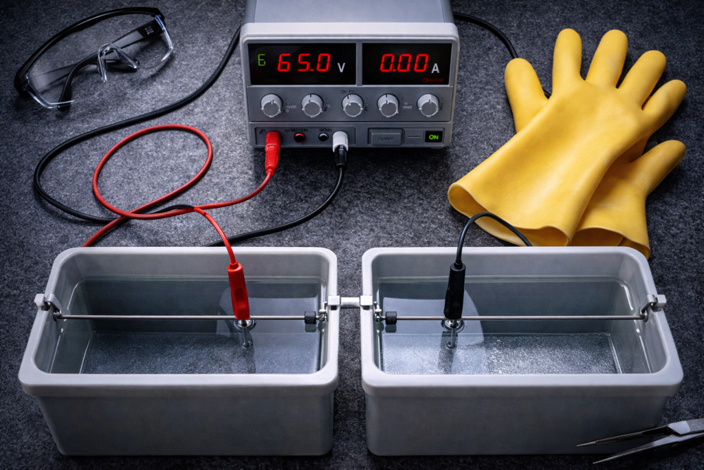 O trabalho com metais reativos e processos de anodização ou gravação envolve riscos químicos e elétricos que exigem protocolos de segurança rigorosos e uma organização de bancada impecável. O uso de retificadores de corrente contínua, embora operem em voltagens geralmente consideradas seguras (até 120V), pode causar choques perigosos se as mãos estiverem molhadas com soluções eletrolíticas condutoras. É imperativo que a área de trabalho seja mantida seca, com isolamento adequado entre os tanques de imersão e os controles eletrônicos, além do uso constante de luvas de borracha isolantes e calçados com sola de borracha para minimizar o risco de arco elétrico.