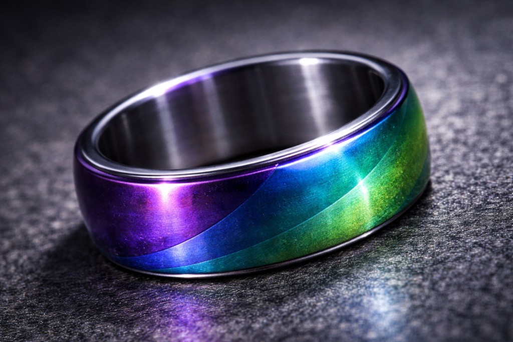 É importante notar que a cor percebida é uma combinação da espessura da camada com o acabamento superficial subjacente. Uma superfície escovada produzirá cores acetinadas e suaves, enquanto uma superfície polida em alto brilho gerará tons metálicos profundos e quase luminescentes. O joalheiro avançado pode utilizar técnicas de anodização gradativa, imergindo a peça lentamente no banho enquanto altera a voltagem, criando gradientes perfeitos (ombré) que mimetizam fenômenos naturais como o pôr do sol ou as cores de uma mancha de óleo na água, tudo através do controle rigoroso da eletrodinâmica.