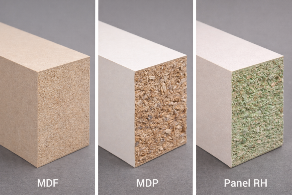 A durabilidade de uma cozinha começa no que não se vê: o substrato estrutural dos móveis. A escolha entre MDF, MDP e painéis resistentes à umidade não é uma questão de “qual é melhor”, mas de onde cada um funciona melhor. O erro comum está em aplicar o mesmo material em toda a cozinha sem critério técnico.