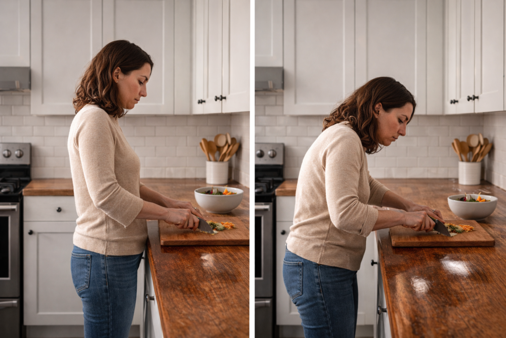 O desempenho de uma cozinha é medido pela fluidez do movimento e pelo esforço físico exigido ao longo do dia. Uma cozinha pode ser visualmente impecável e, ainda assim, falhar completamente no uso real quando obriga o usuário a percursos longos, posturas inadequadas ou movimentos repetitivos mal distribuídos. A ergonomia surge exatamente para evitar esse desgaste invisível.